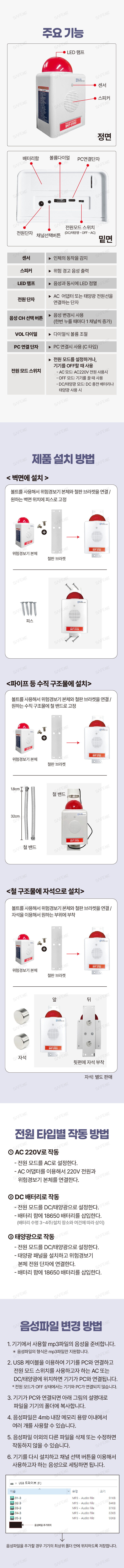 - AC220V 타입 / DC 충전 배터리 타입 / 쏠라 태양광 타입