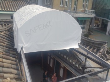 한옥지붕에 자바라천막 설치