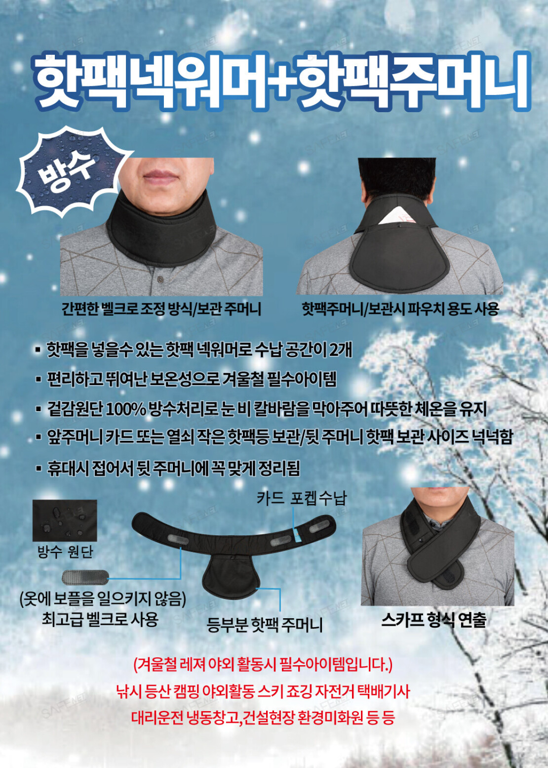 3) 핫팩 넥워머 + 핫팩 주머니