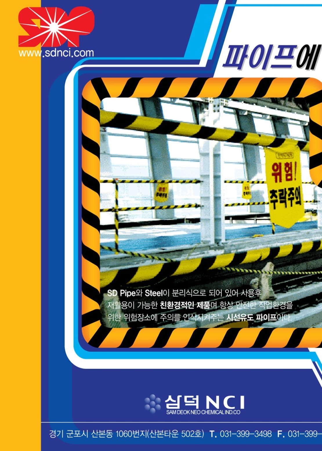저희 (주)삼덕NCI는 도로, 건설현장의 안전용품을 개발.제작하는 회사로서 나날이 늘어나는 건설현장의 산업재해와 교통사고의 증가로 인한 수많은 사람들의 고통을 줄이기 위하여 항상 새롭고 다양하며 현대적인 감각으로 세계 최고 품질의 교통안전 관련제품을 개발하여 공급하고 있습니다. 최근 자동차의 주행성능 향상과 운전자들의 속도감에 대한 옥구증대 등에 딸는 과속주행 등이 더욱 심해져, 이로 인한 교통사고 발생은 심각한 수준에 이르고 있습니다. 특히, 차량이 도로를 이탈하거나 중앙선을 침범하였을 경우 발생하는 사고는 치명적인 결과를 가져오므로 이런 피해를 최소화 할 수 있는 적절한 도로안전 시설의 설치가 매우 중요합니다. 도로안전시설 가운데 시선유도시설은 주,야간 운전자들에게 도로선형 정보를 효과적으로 제공함으로써 안전하고 편안한 운행을 도모할 수 있도록 하는 시설물입니다. 저희 (주)삼덕NCI는 더욱 더 발전하는 모습으로 여러분을 찾아뵙겠습니다. 앞으로도 계속적인 지도편달을 바라옵니다.