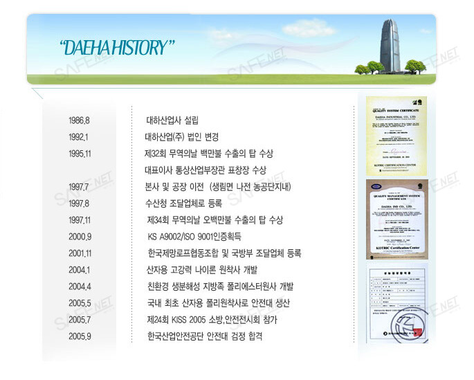 폐사는 중소기업으로서 국내 최초로 산자용 고강력 원착사를 자체 개발하여 원재료부터 품질관리를 하여 "크로마 벨트"라는 안전대를 생산하고 있습니다. 외국기업의 제품을 단순히 모방하는 업체가 아니라 작은것부터 생각하고 개발하여 소비자에게 작지만 편리하고 실용적으로 안전을 생각하는 보호구를 생산하는 업체로 꾸준히 노력하겠습니다.