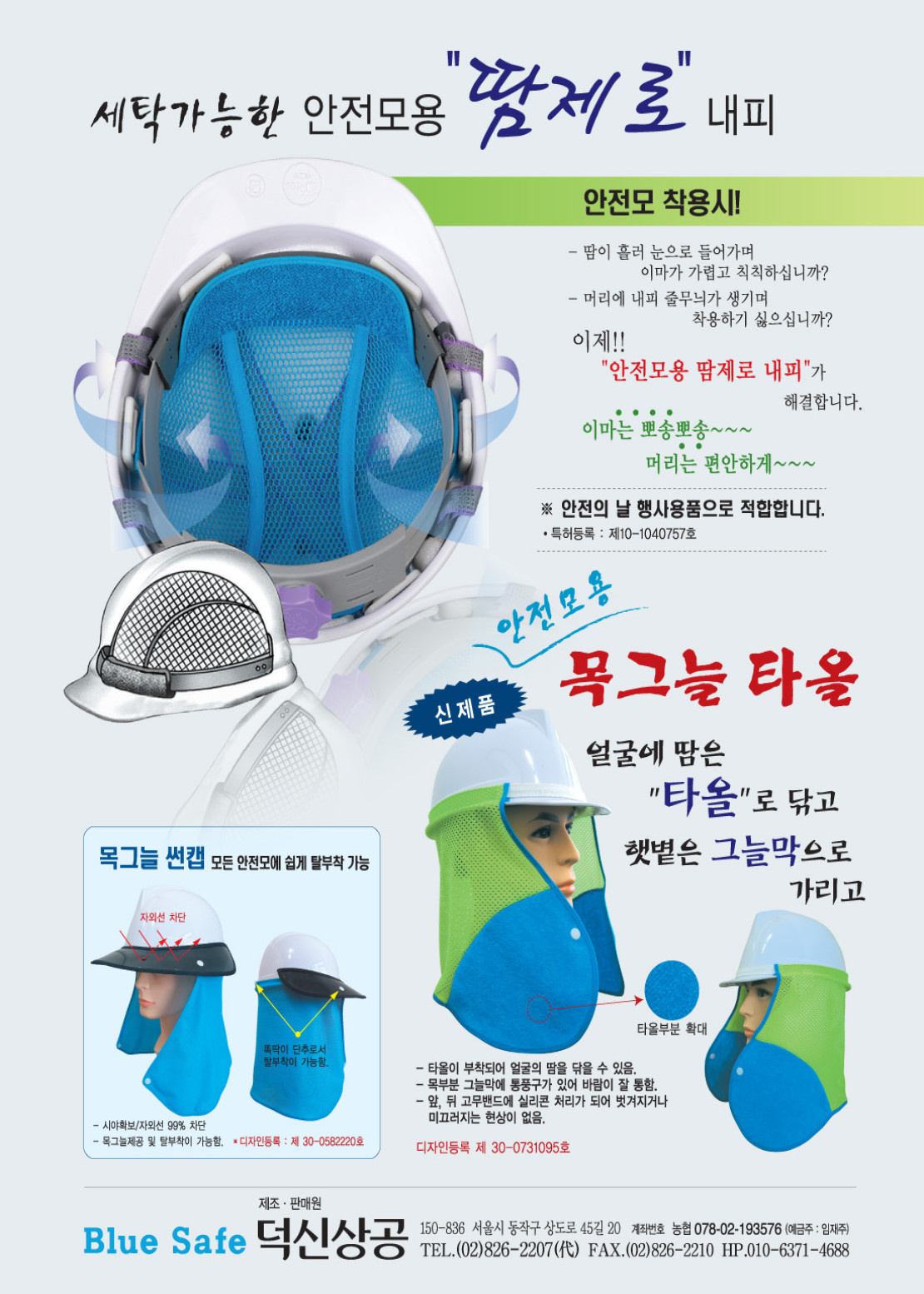 땀제로내피,목그늘타월,목그늘썬캡,안전모썬캡,목폴라두건,방한장갑 등을 생산하는 전문기업 덕신상공입니다.