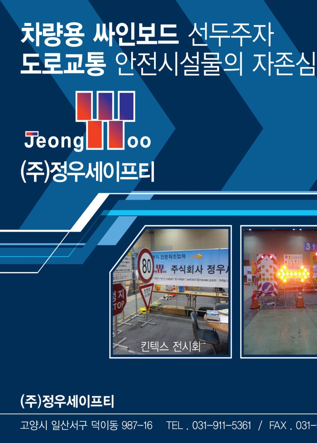 저희 (주)정우세이프티는 국산 윙커호스, 차량용싸인보드, LED점멸기, 교통안전 표지판 등 교통안전에 쓰이는 전반적인 제품을 취급하는 전문 제품업체 입니다.