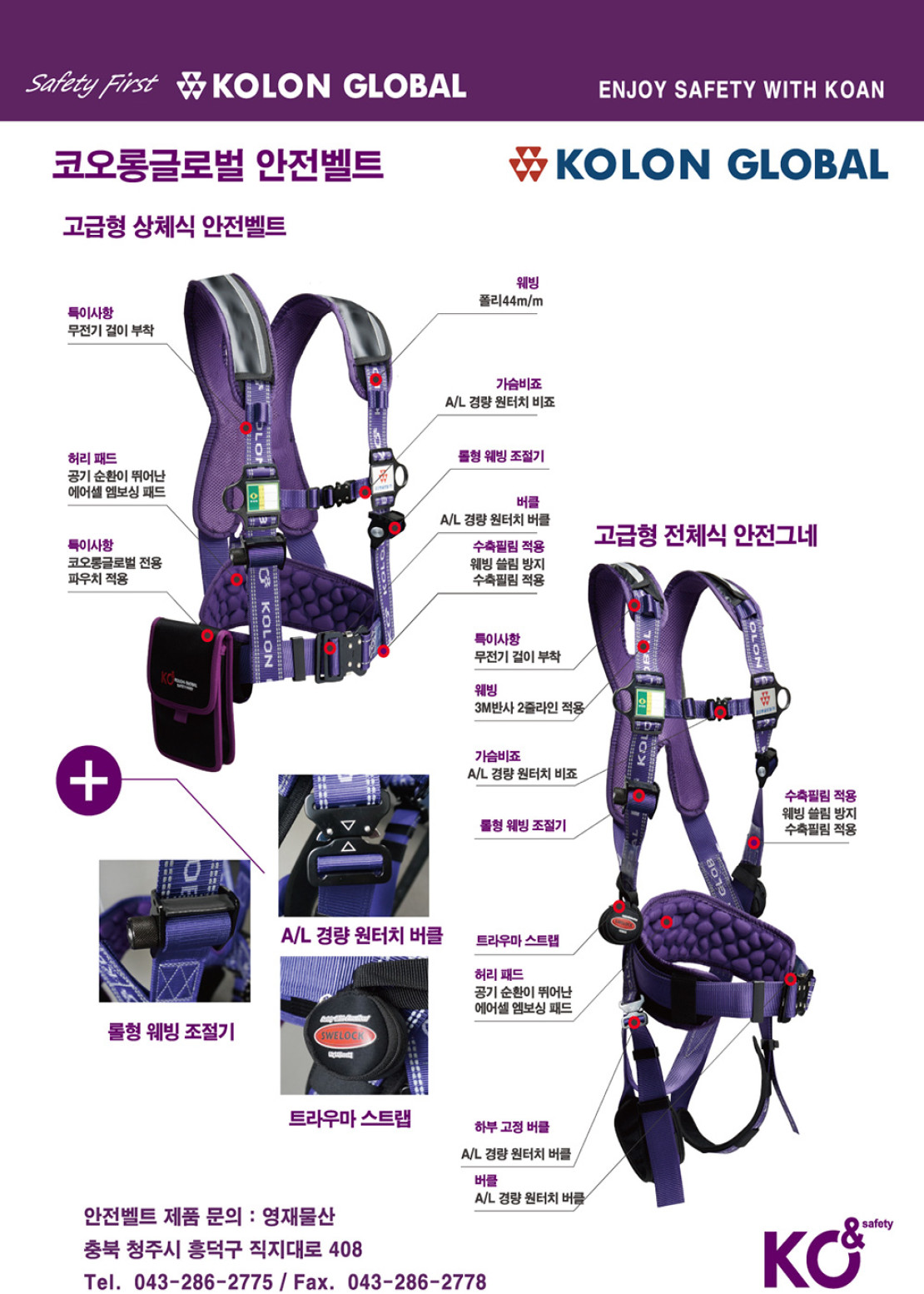 수행하고 있습니다. 고객의 신뢰속에 상호 Win-Win 할 수 있는 제도적 장치를 마련하여 고객지향적인 영업활동을 계속 추구해 나갈 것입니다. "코앤"은 2004년 뛰어난 안전성과 견고성, 패션 트렌드 접목으로 많은 분들께 사랑받아 온 코오롱글로벌 안전화를 바탕으로 코오롱글로벌이 런칭한 안전브랜드입니다. 꾸준한 연구 개발 및 디자인 차별화를 통해 고객의 안전을 최우선으로 생각하는 안전 전문 브랜드로 도약하도록 하겠습니다. |