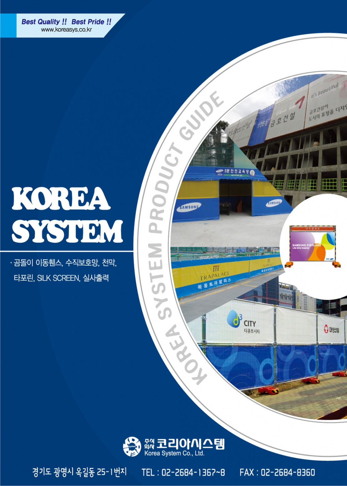 주요 생산제품으로는 갱폼수직보호망, 곰돌이이동휀스, 휘장막, E/V방호막, 안전휀스띠망, 오각타포린, 철구조물천막, 동절기보양천막 등 입니다.