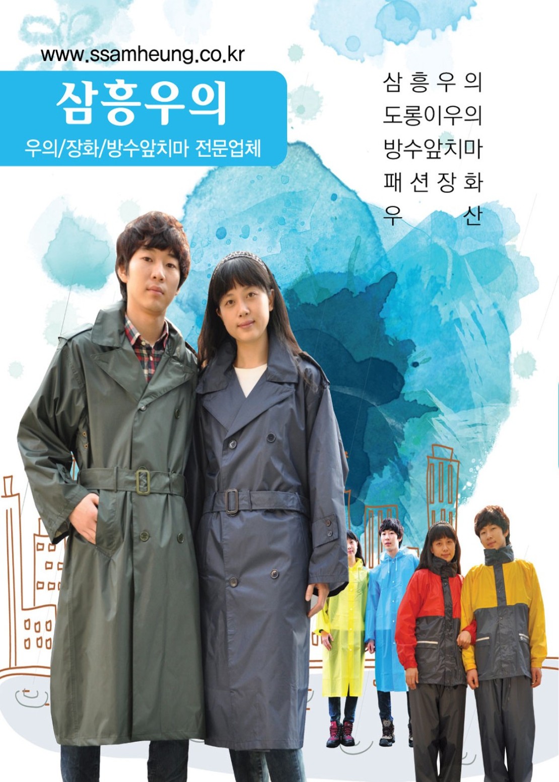 삼흥우의는 다년간 오직 한길 우의, 방수물품만을 전문적으로 개발,생산,판매하여 왔습니다. 앞으로도 지속적으로 제품개발 및 연구에 최선을 다하는 기업이 되겠습니다.