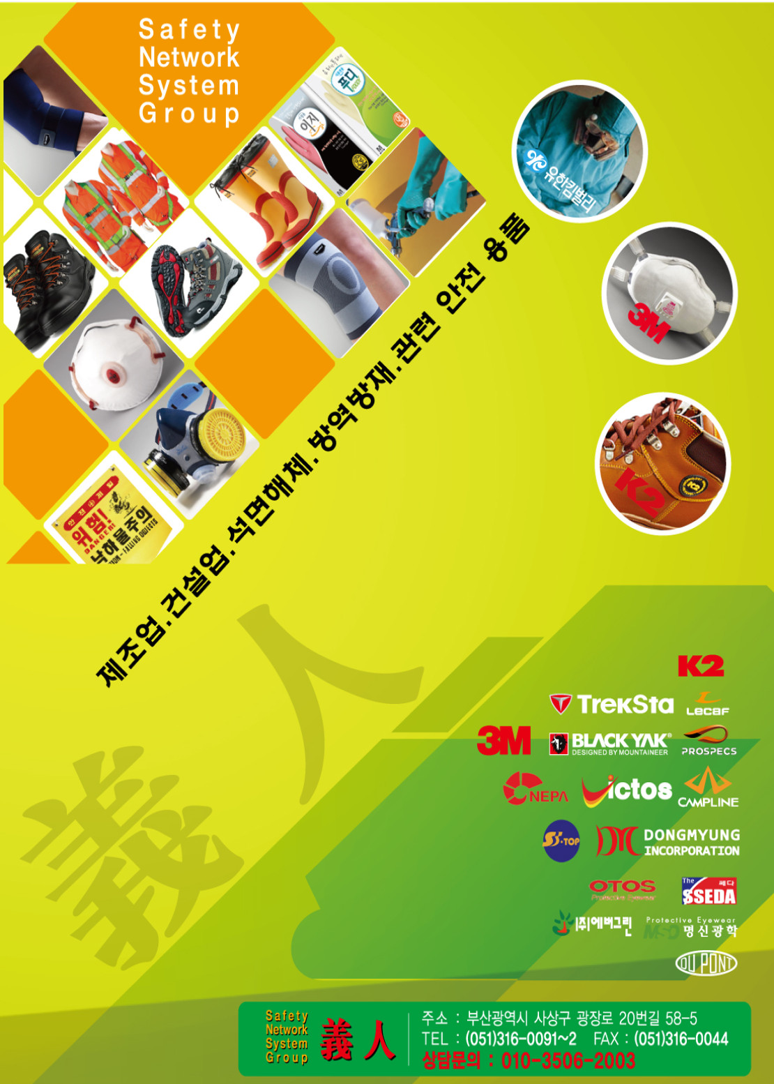 당사는 부산 사상구에 위치하며 안전용품 도매를 전문으로 하고 있고 안전화,안전모,안전벨트,마스크 등 안전용품 모든 제품을 취급하고 있습니다.