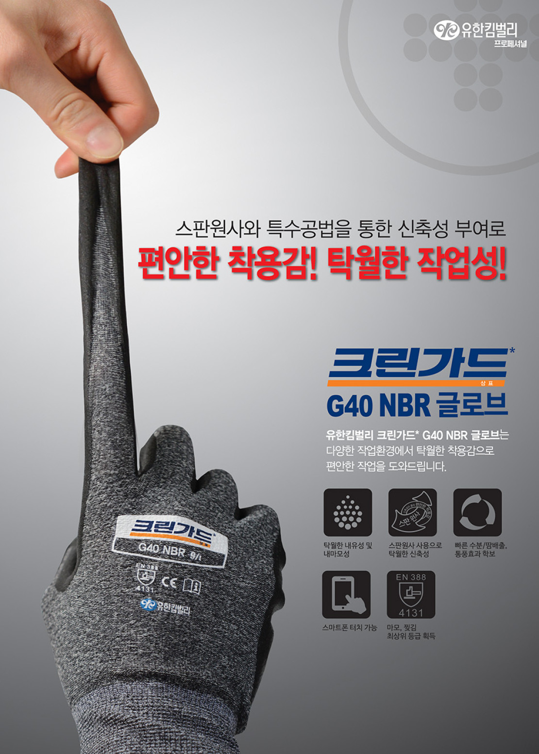 크린가드*는 유한킴벌리 프로페셔널 사업부의 보호복과 방진마스크 그리고 산업용 글로브에 대한 브랜드입니다. 특히, 크린가드* 보호복은 국내에 최초로 소개된 단용성 부직포 보호복으로써 현재 A10에서 A80까지 용도와 기능에 따라 다양한 제품군을 보유하고 있습니다.