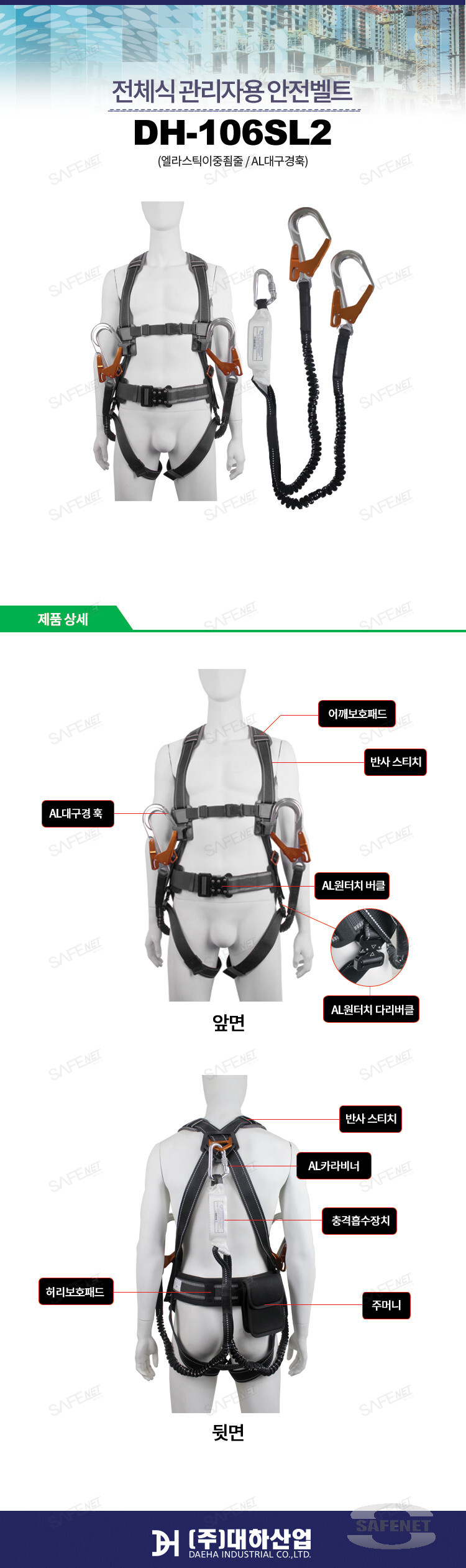 크로마 관리자용 전체식안전그네 DH-106SL2 (엘라스틱이중죔줄/AL대구경훅)