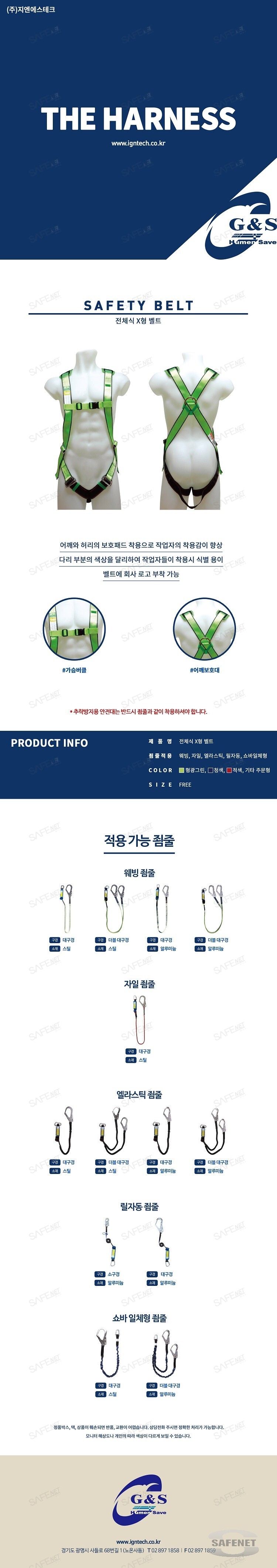 규격 어깨패드 / 죔줄 선택가능 / 벨트색상 선택가능