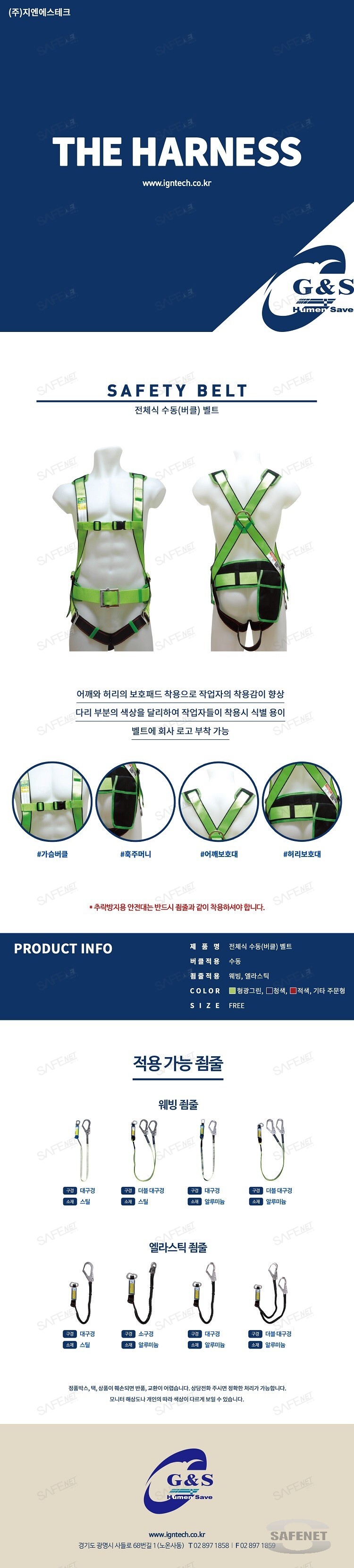 규격 가슴버클 / 훅주머니 / 가슴패드 / 허리패드 / 훅구경 및 재질 선택가능