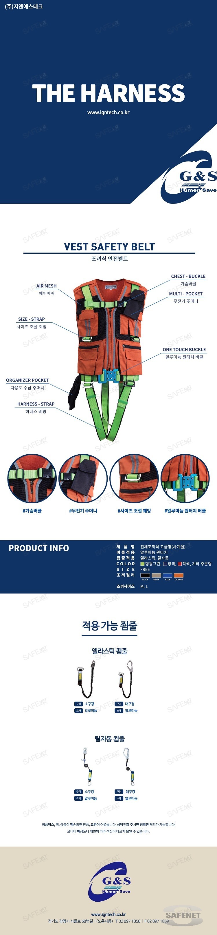 규격 조끼일체형안전그네 / AL원터치허리버클 / 무전기주머니