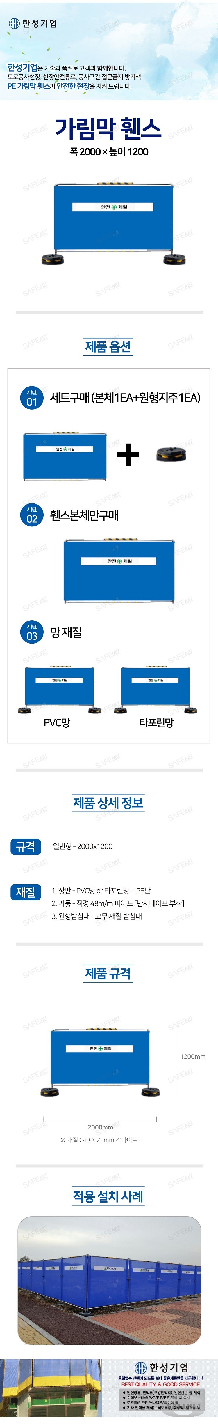 규격 w2000 x H1200 / 1단 / 청색망 / 반사지 / 안전제일