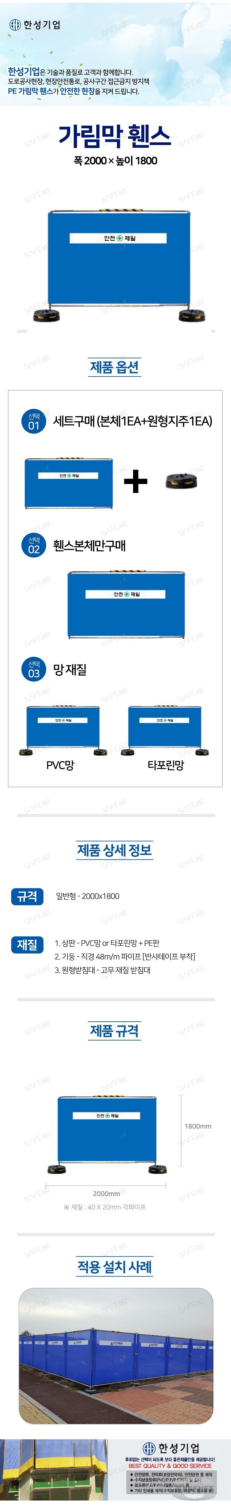 규격 w2000 x H1800 / 1단 / 청색망 / 반사지 / 안전제일