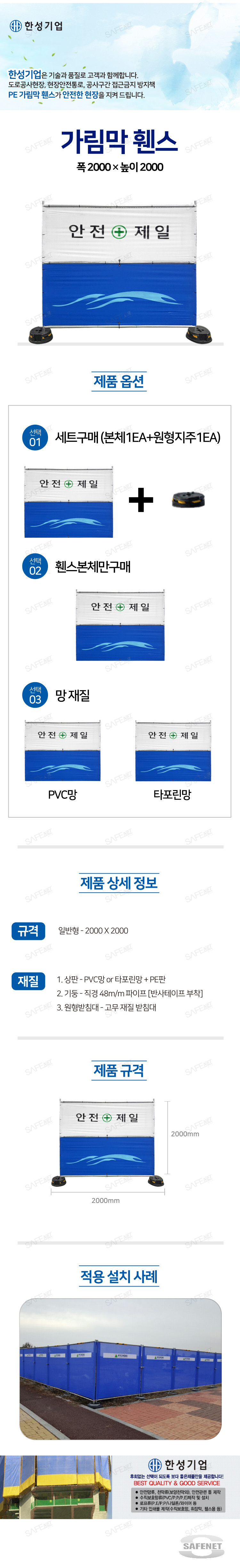 규격 w2000 x H2000 / 2단 / 청색망 / 반사지 / 안전제일
