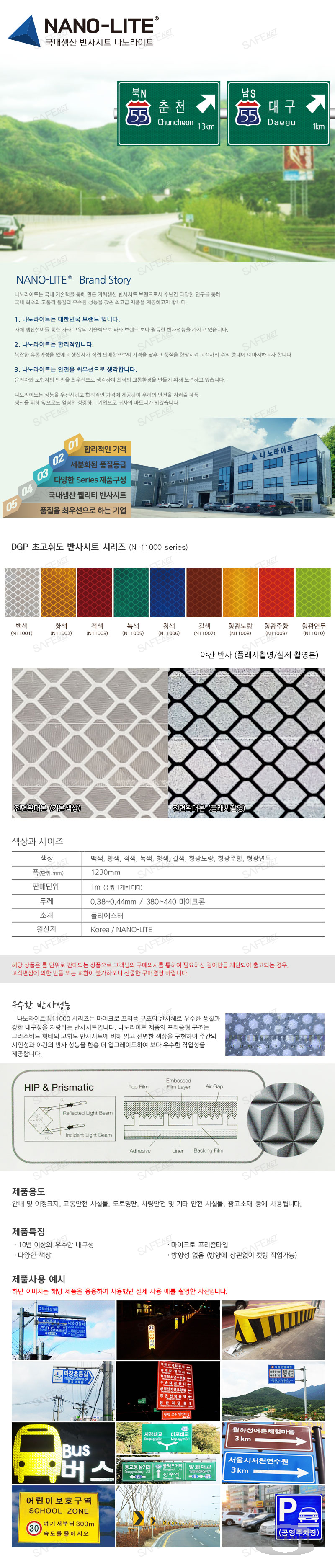 안내 및 이정표지, 교통안전 시설물, 도로명판, 차량안전 및 기타 안전 시설물, 광고소재 등에 사용됩니다.
