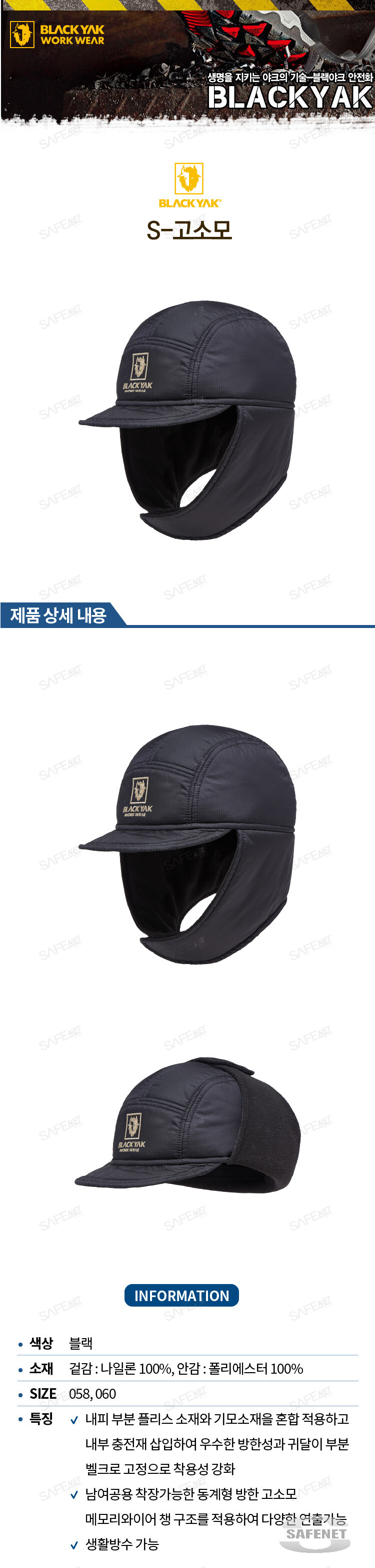 - 내피 부분 플리스 소재와 기모소재을 혼합 적용하고 내부 충전재 삽입하여 우수한 방한성과 귀달이 부분 벨크로 고정으로 착용성 강화