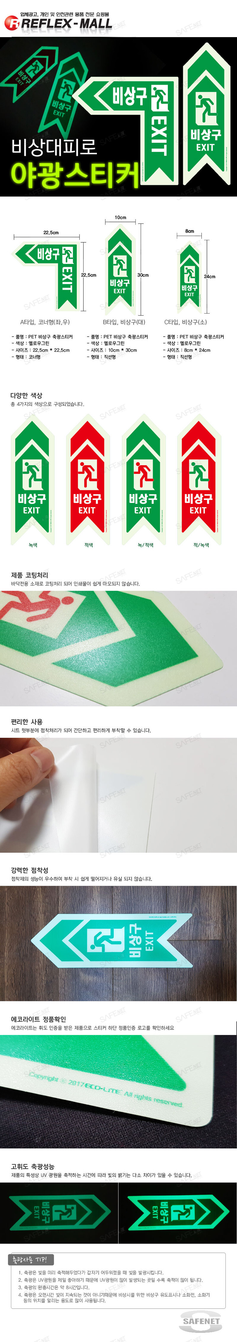 - 형태 : A타입 - 코너형(좌우), B타입 - 비상구(대)직선형​, C타입 - 비상구(소)직선형