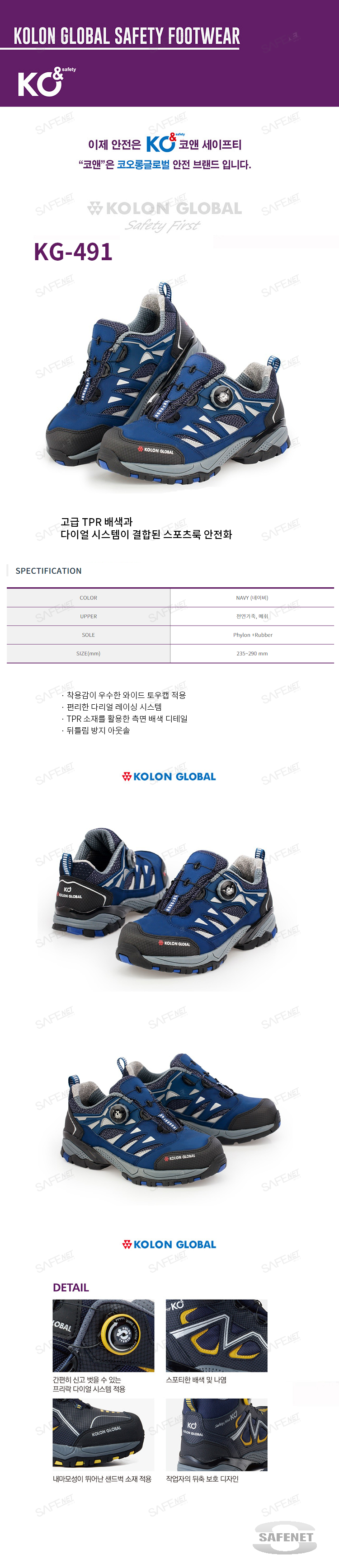 코오롱글로벌안전화 KG-491 (다이얼)