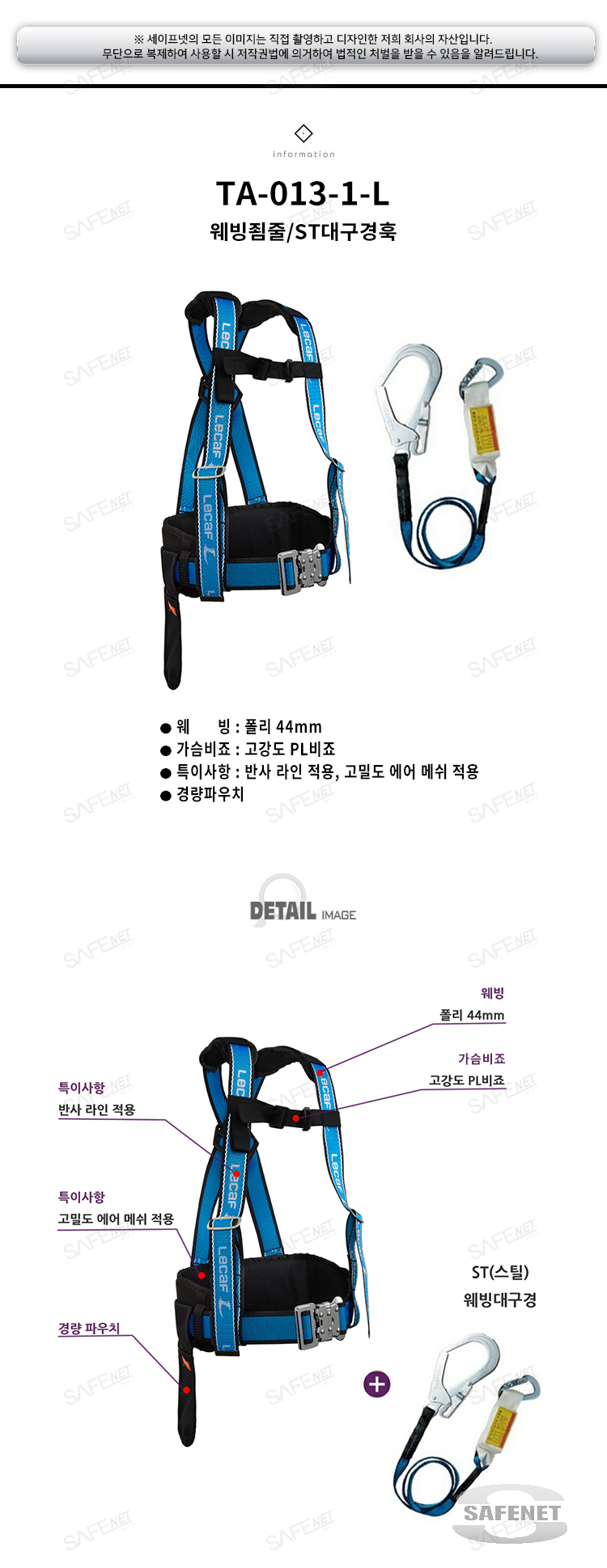 상체식안전벨트 TA-013-1-L 웨빙죔줄/ST대구경훅