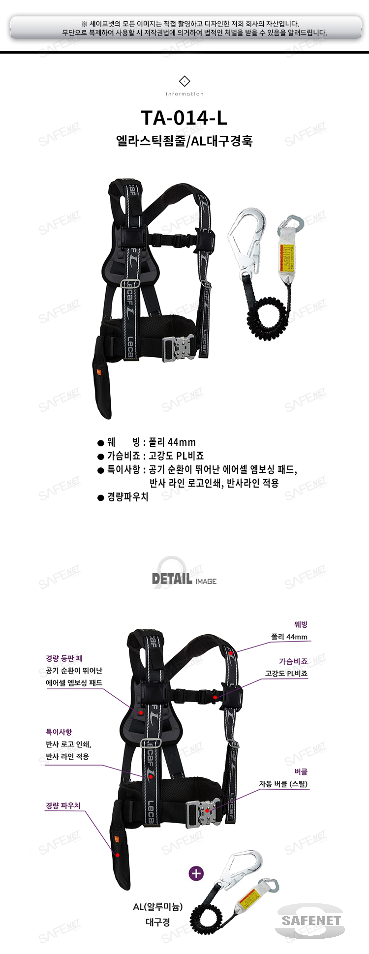 상체식안전벨트 TA-014-L 엘라스틱죔줄/AL대구경훅