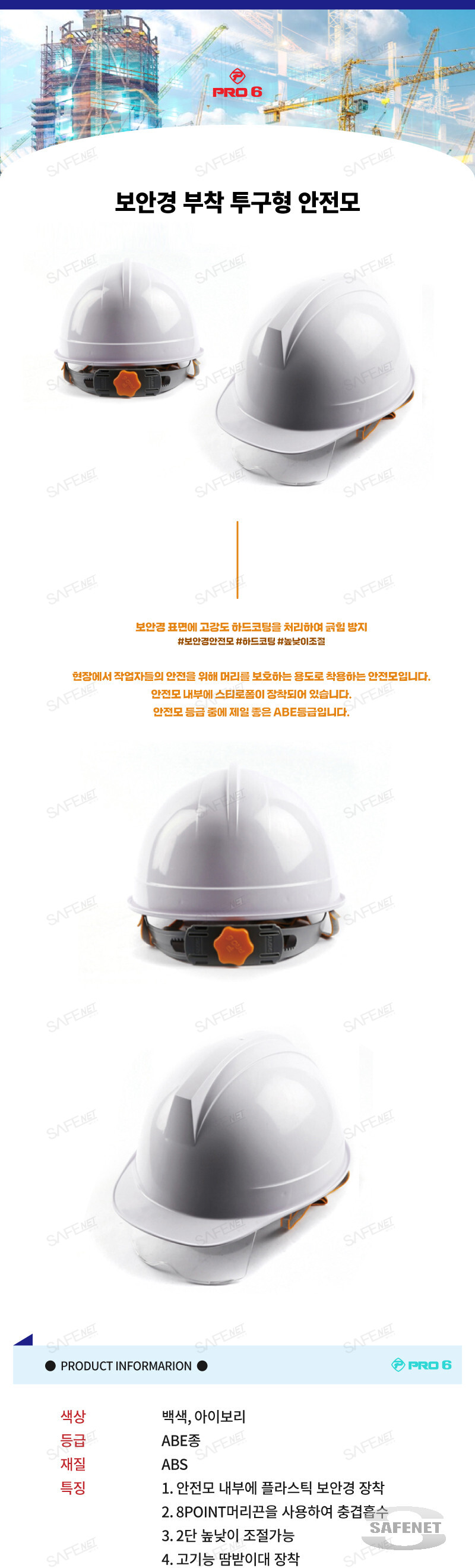 프로식스 보안경부착투구형안전모