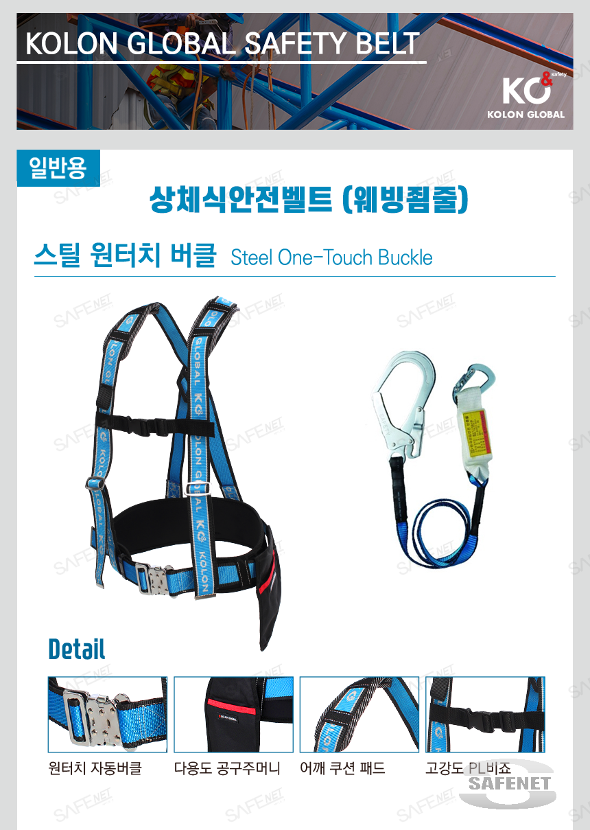 규격 스틸원터치허리버클 / 웨빙죔줄 / 스틸훅 / 다용도공구주머니 / 어깨쿠션패드 / 고강도PL비죠