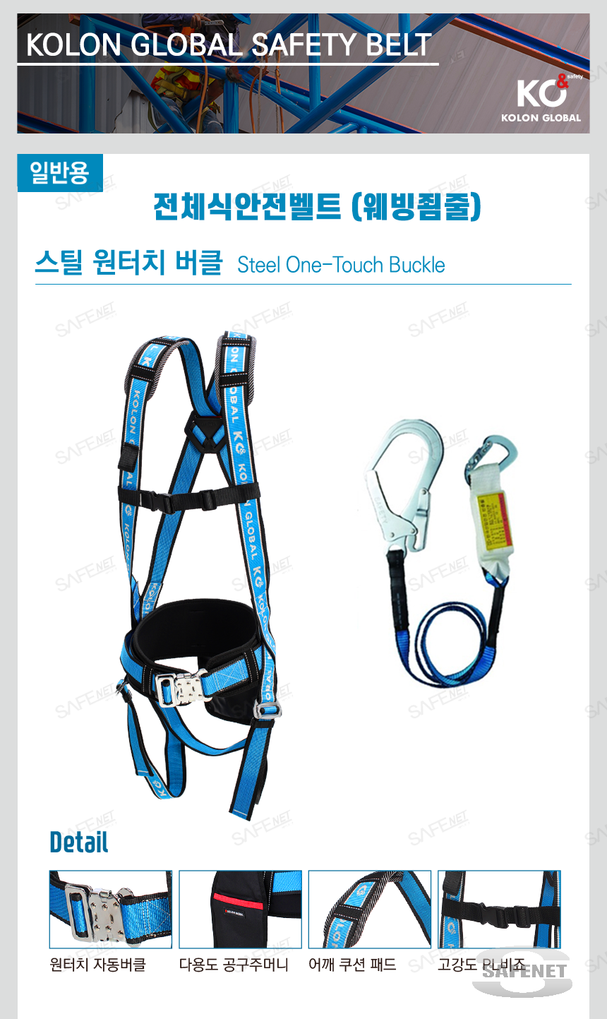 규격 스틸원터치허리버클 / 웨빙죔줄 / 다용도공구주머니 / 어깨쿠션패드 / 고강도PL비죠