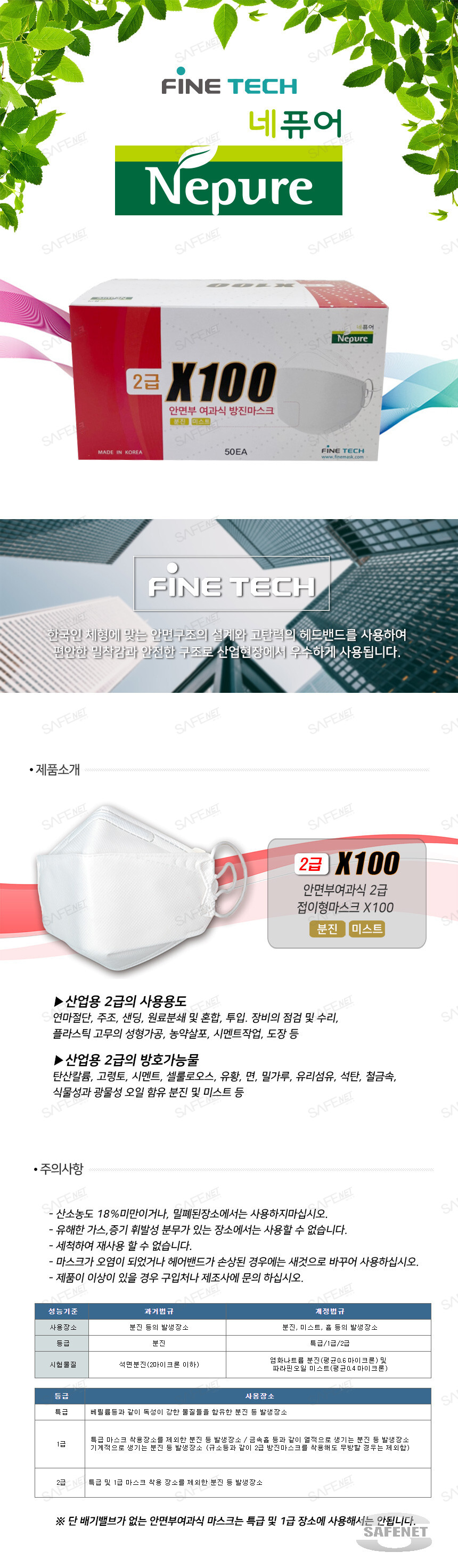 파인텍 방진2급 접이식 방진마스크 X100