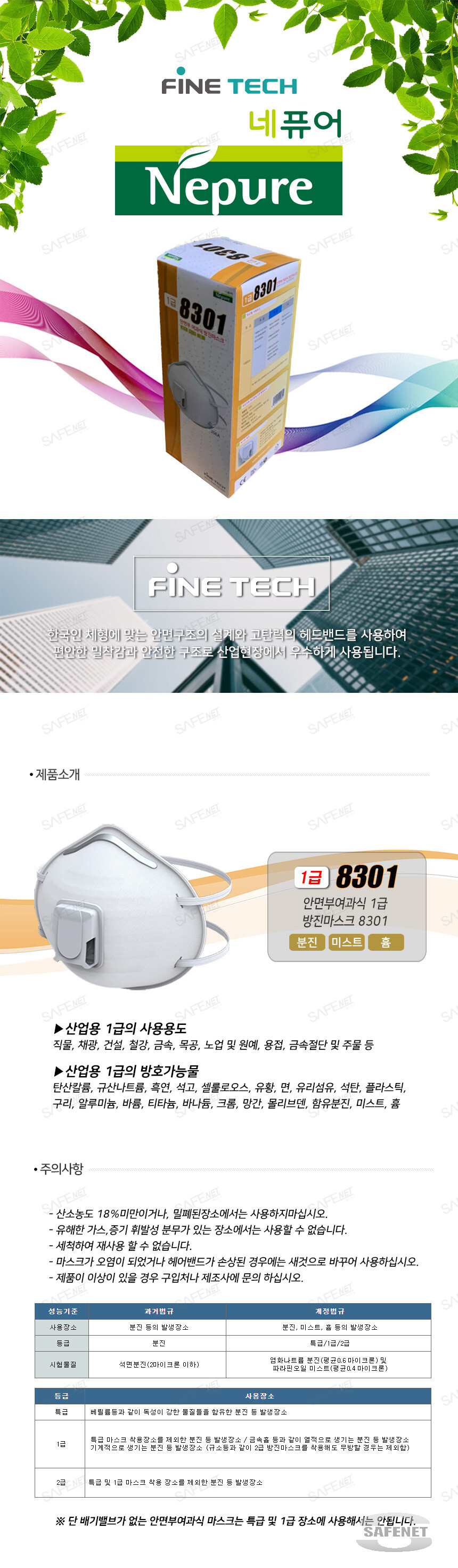 파인텍 방진1급 방진마스크 8301 (배기밸브)