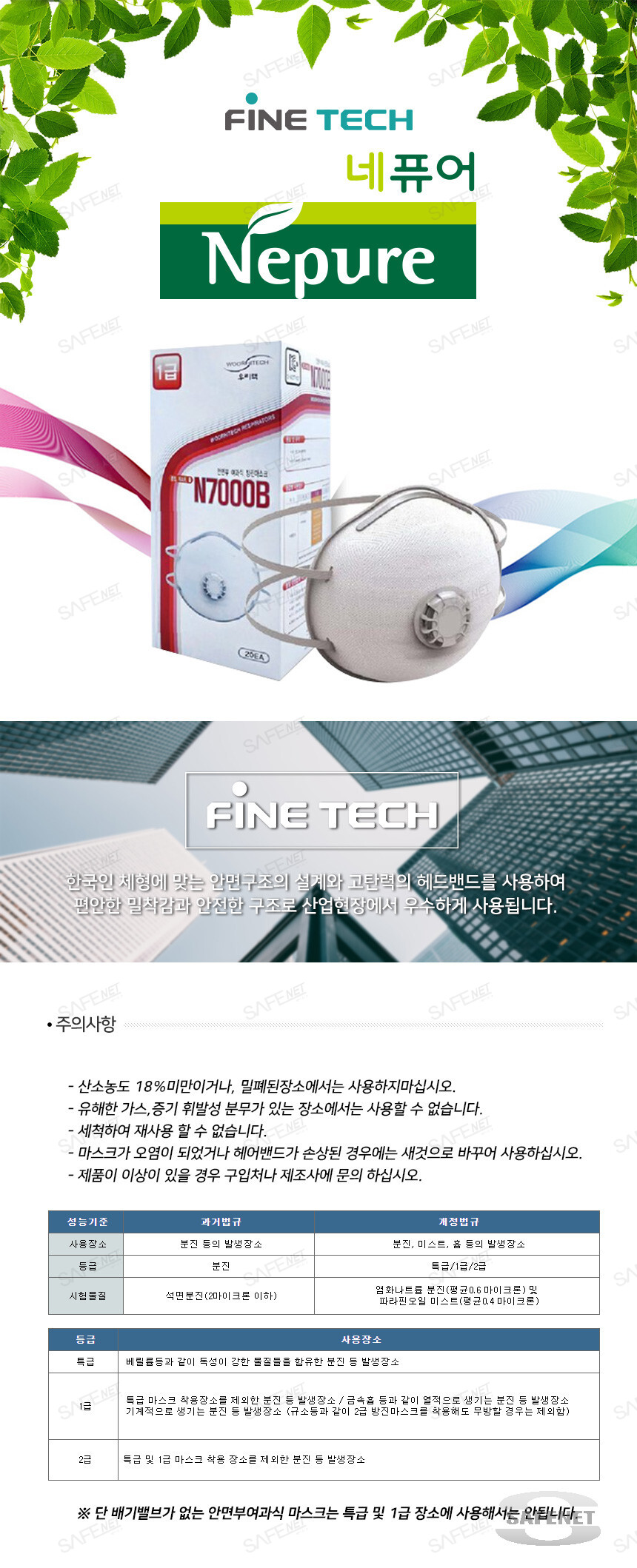 파인텍 방진1급 방진마스크 N7000B (배기밸브)