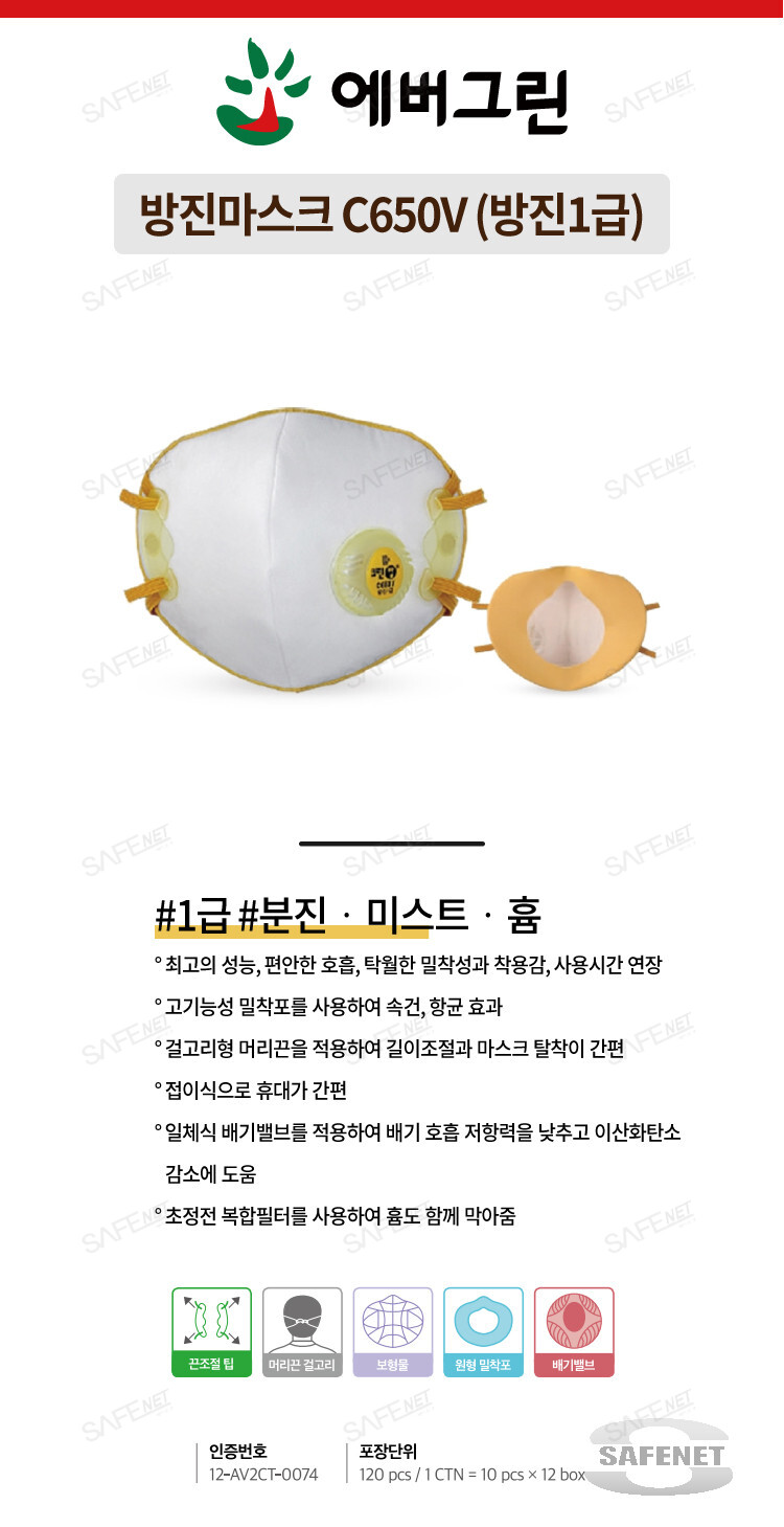 크린탑 방진마스크 C650V (방진1급)