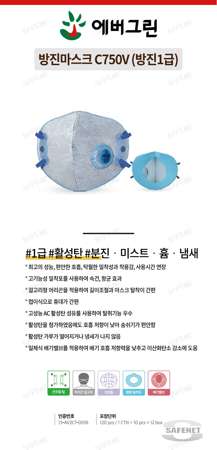 규격 인증번호:13-AV2CT-0016, 10EA/INBOX, 120EA/OUTBOX, 분진.미스트.흄.냄새용