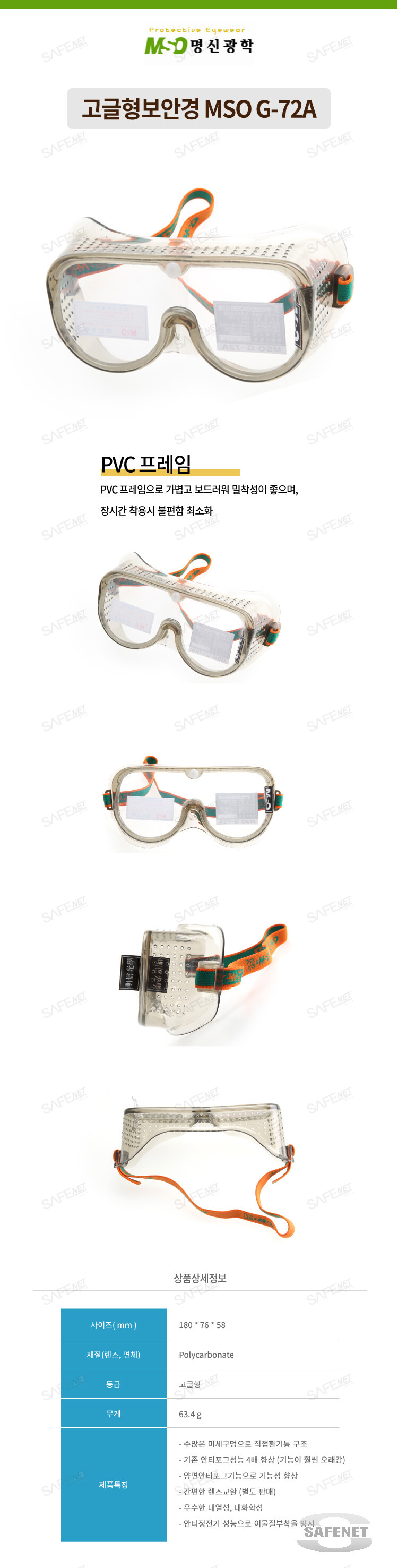 고글형보안경 MSO G-72A