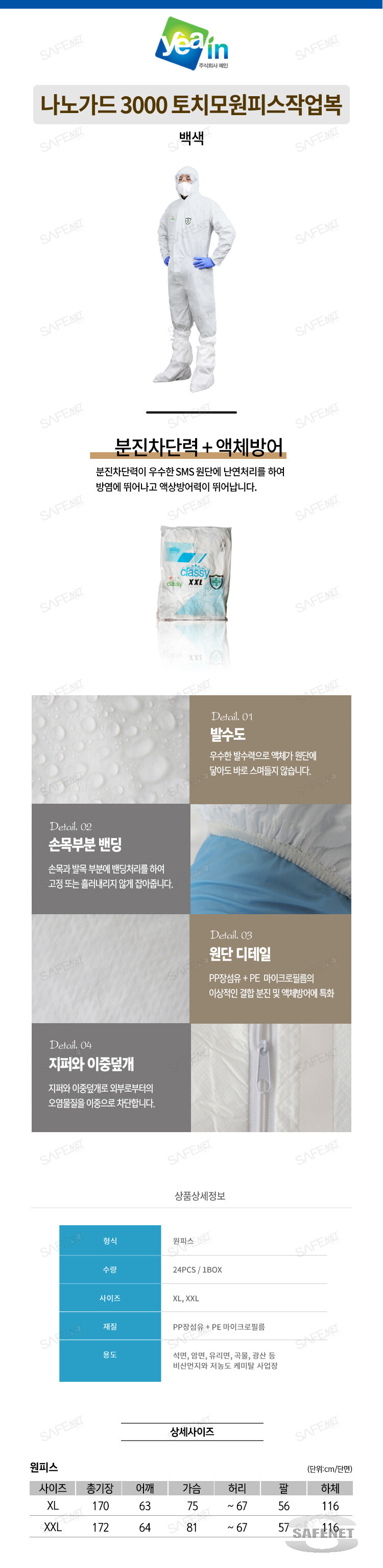 나노가드 3000 토치모원피스작업복 / 백색