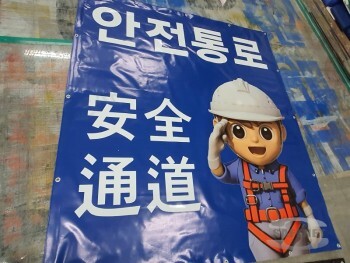 UV실사, 솔벤실사를 이용하여 건설현장에 필요한 문구,로고,색상 모두 원하시는대로 작업가능합니다.