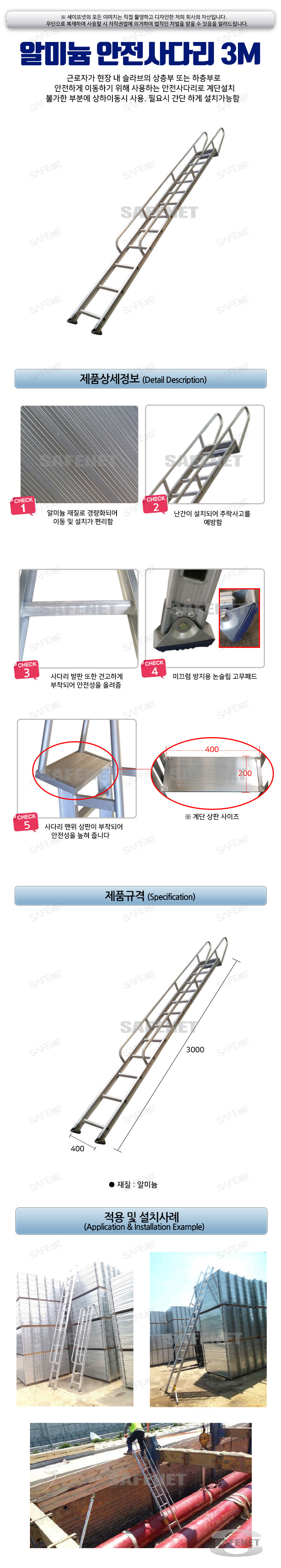 근로자가 현장 내 슬라브의 상층부 또는 하층부로 안전하게 이동하기 위해 사용하는 안전사다리로,