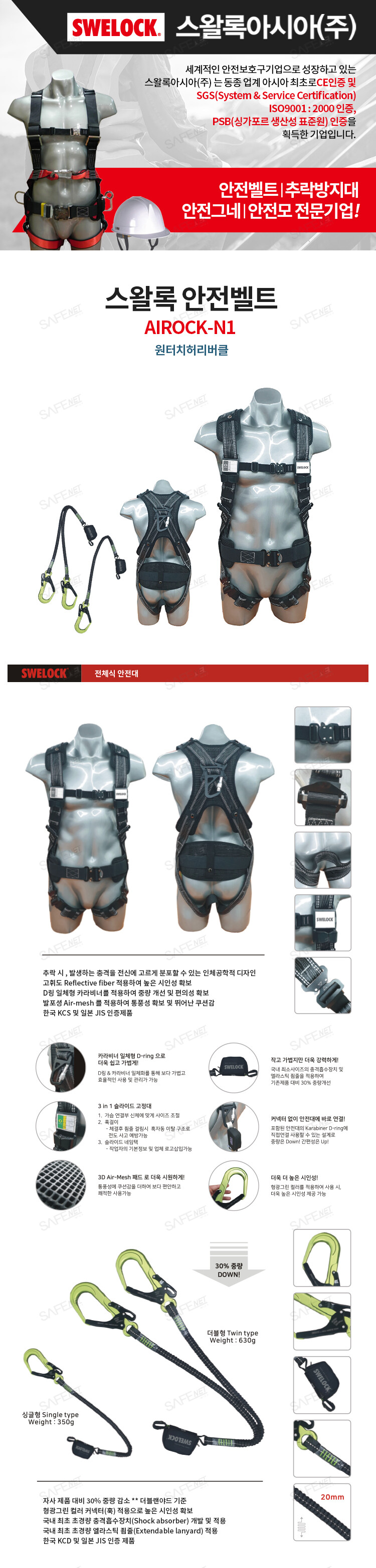 스왈록 원터치버클형 안전벨트 AIROCK-N1