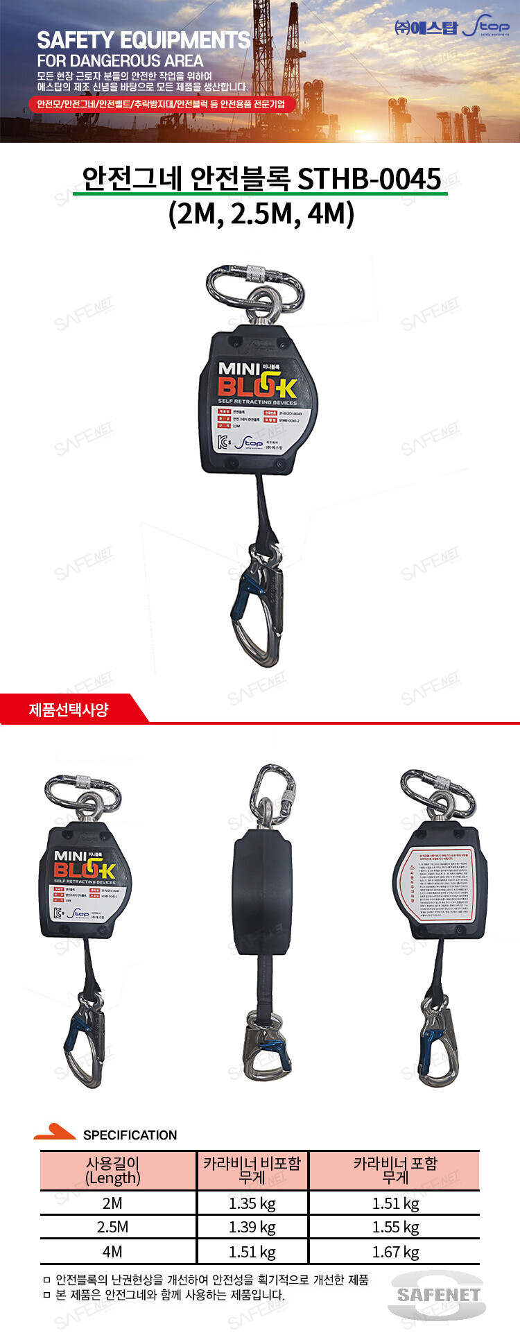 에스탑 안전그네식 안전블록 STHB-0045 (2M,2.5M,4M)