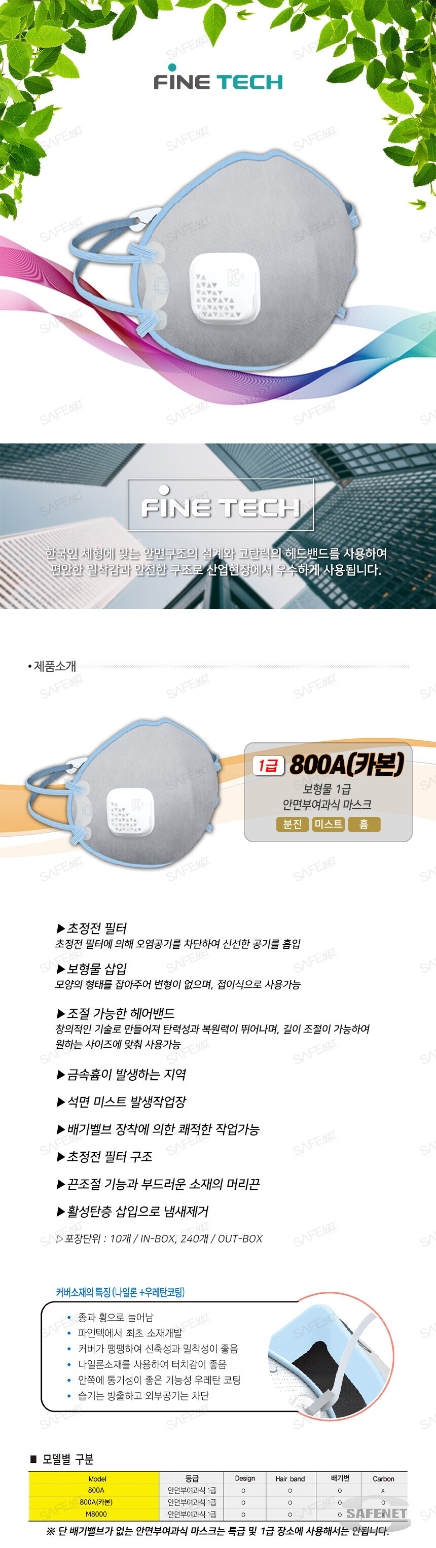 파인텍 보형물 1급 안면부여과식 마스크 800A(카본)