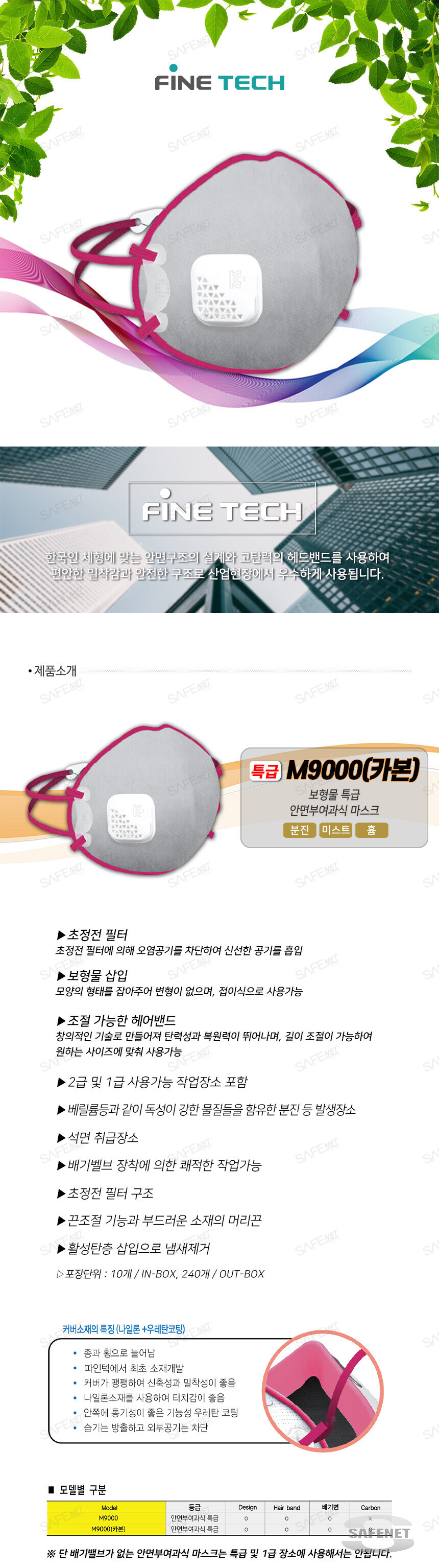 파인텍 보형물 특급 안면부여과식 마스크 M9000(카본)