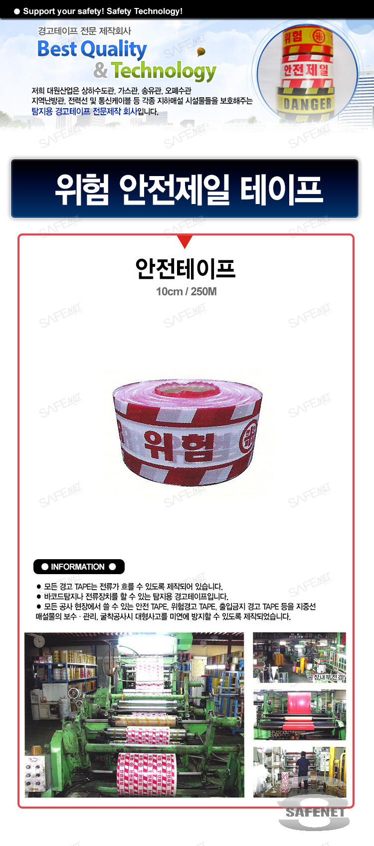 규격 폭10cm / 백적사선 / 위험안전제일 인쇄