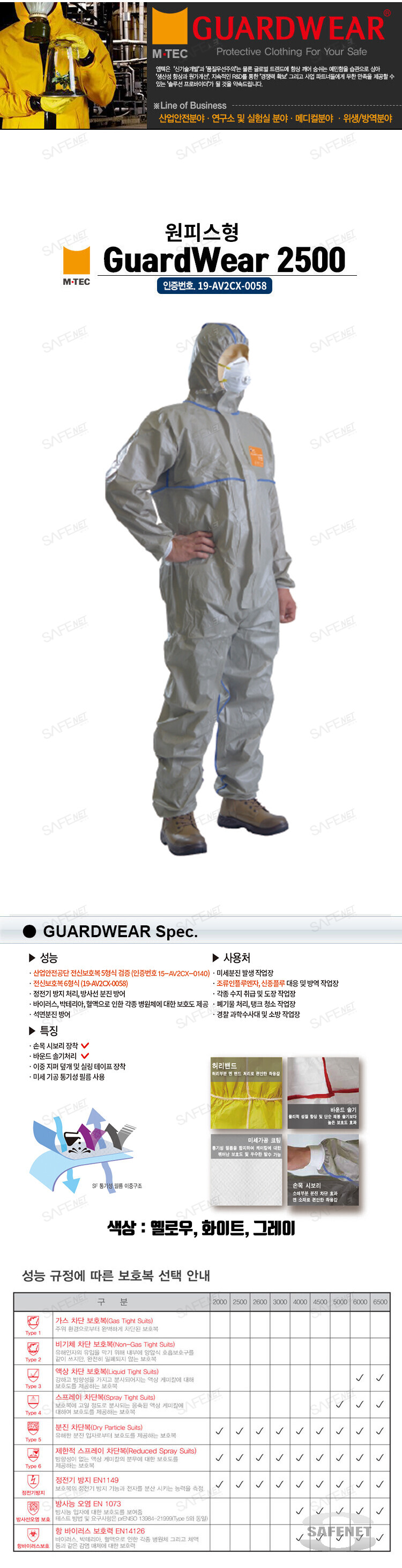 엠텍 가드웨어 4500 보호복/원피스형