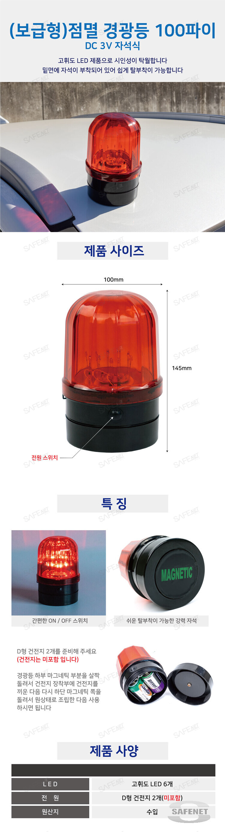 규격 고휘도 LED6개 / 전원 : D형 건전지 2개(미포함)