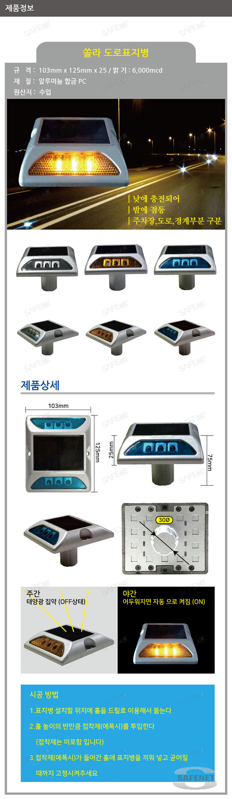 완성기업 사각쏠라표지병(양면) 점멸등 지속등 매립형