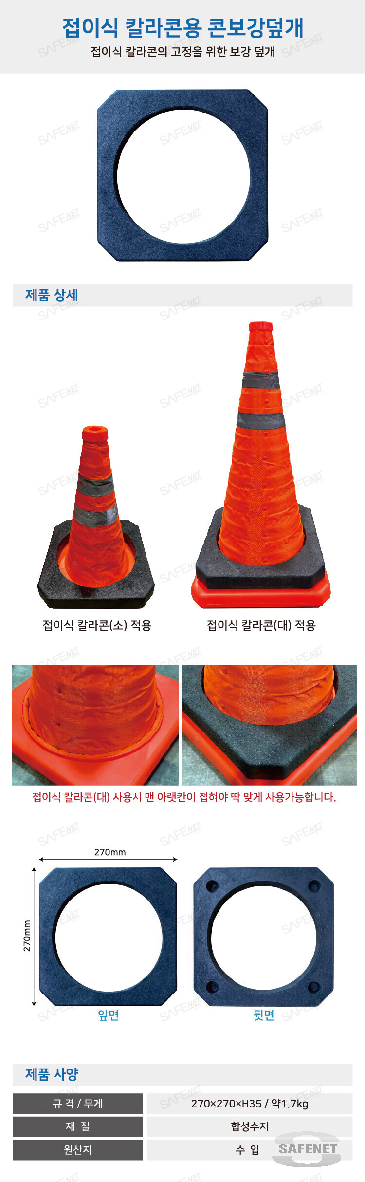 완성기업 접이식 칼라콘용 콘보강덮개