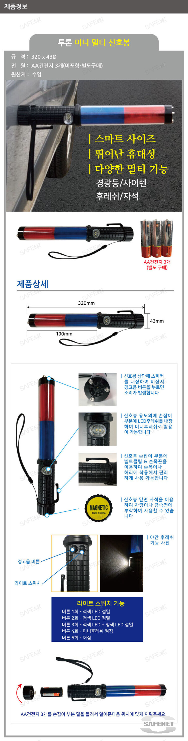업체 > 안전용품 > 공사안전용품 > 전자신호봉-경광봉 > 투칼라신호봉(8)