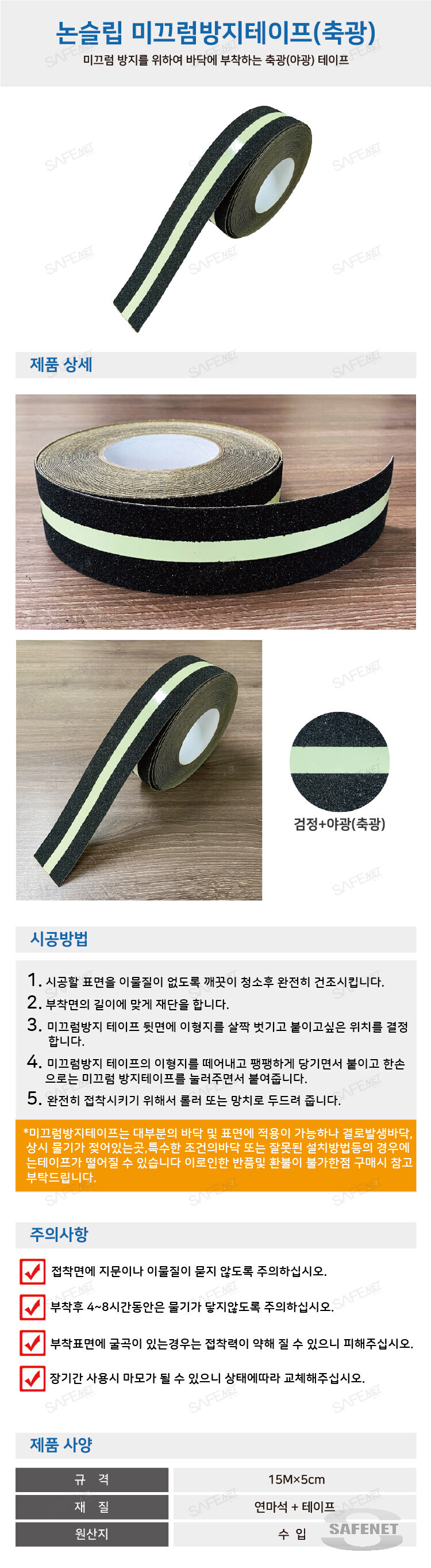 규격 재질 : 연마석+테이프 / 15m x 5cm