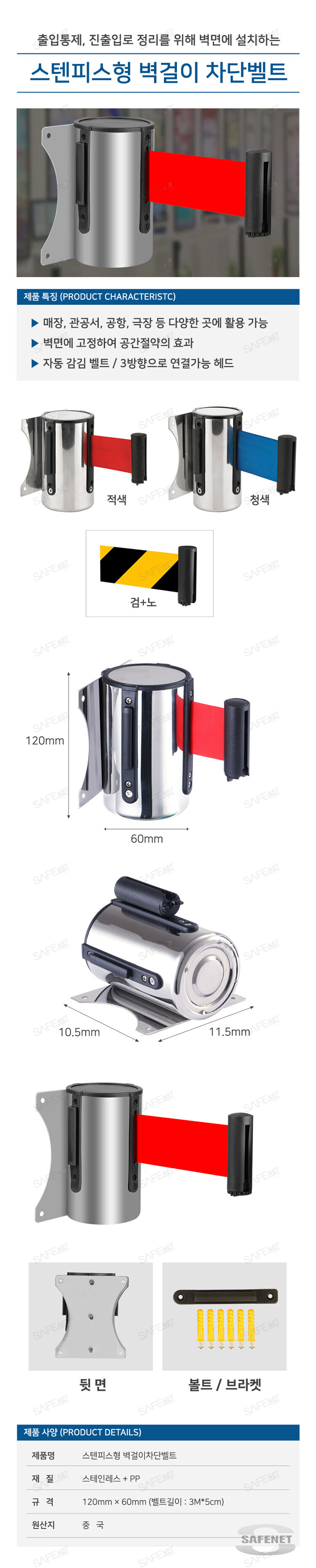 규격 120-60mm(벨트길이 : 3M x 5cm) / 스테인레스+PP