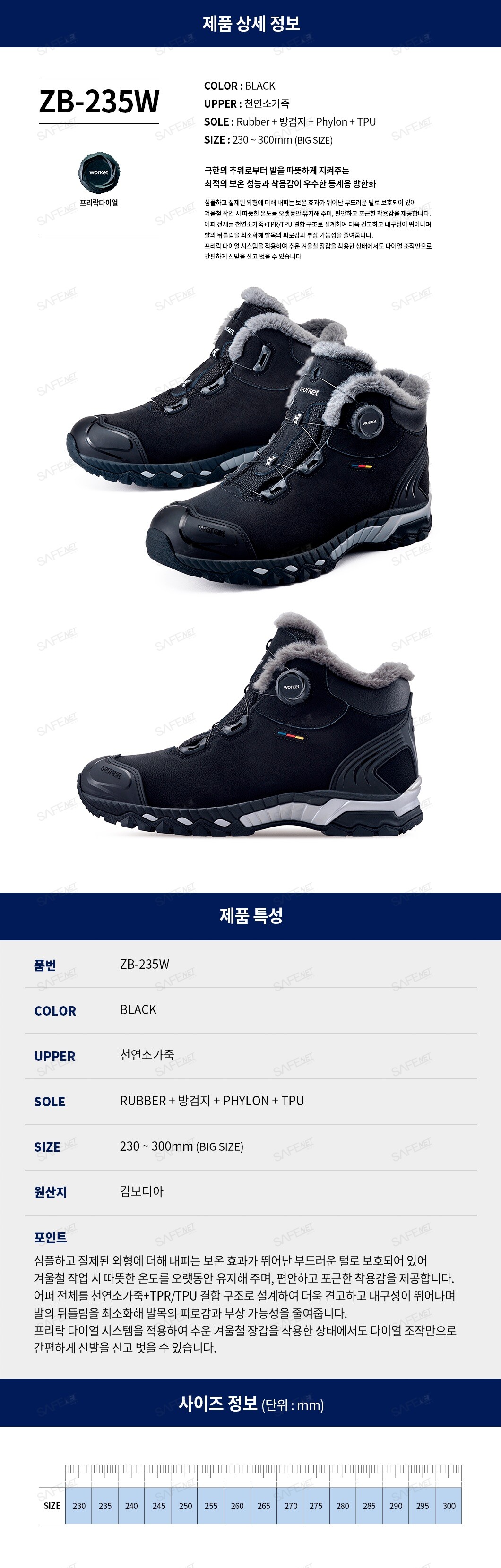 워킷 안전화 ZB-235W (방한화/다이얼)